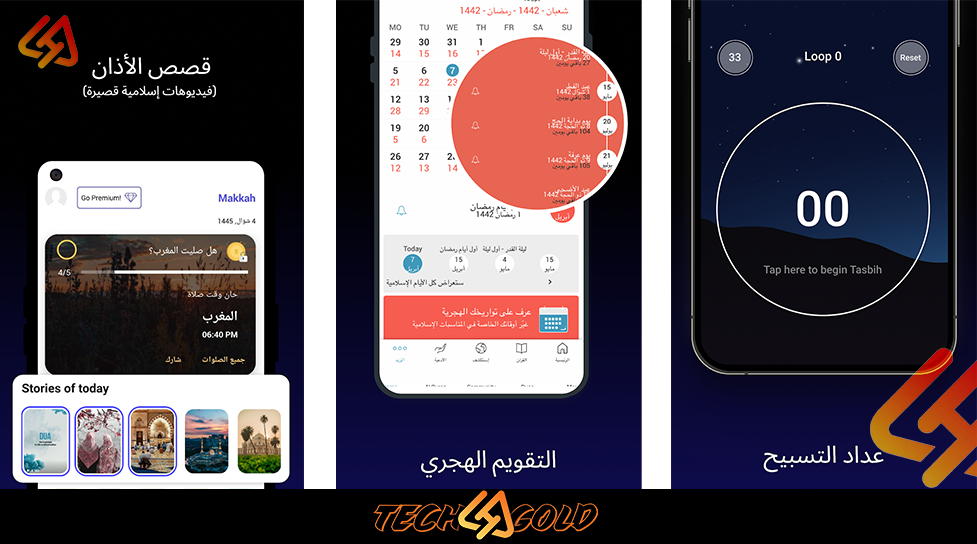 خاصية التقويم الهجري والمناسبات الإسلامية عند تحميل تطبيق الأذان برو Athan Pro آخر إصدار