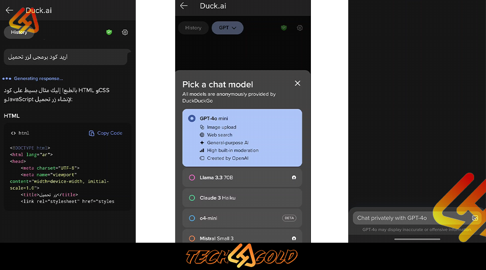 DuckDuckGo أطلق ميزة جديدة تتيح لك التحدث مباشرة مع نماذج ذكاء اصطناعي من خلال صفحة البحث أو تطبيق الهاتف، مثل: