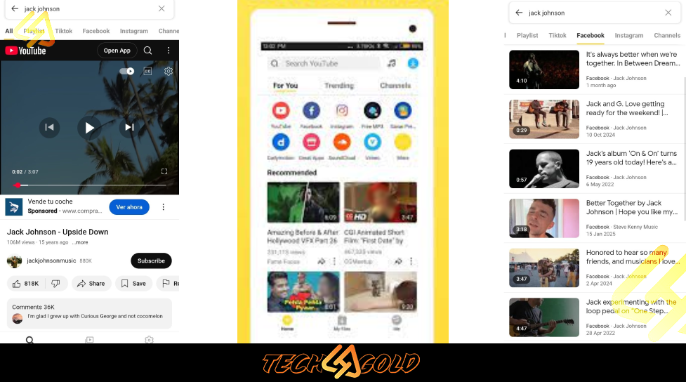 • يدعم التطبيق كل من YouTube وFacebook وInstagram.