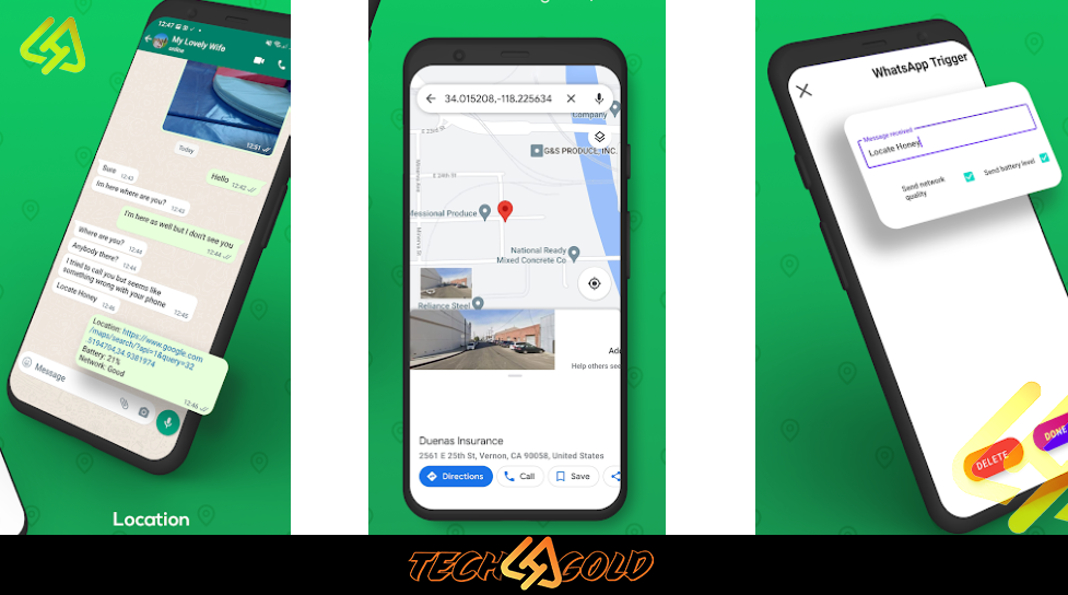 • يقوم Waloc بإرجاع موقع الجهاز لرسالة WhatsApp محددة تحددها وترسل عنوان URL للموقع من خلال WhatsApp الذي يعرض موقع الجهاز على خرائط Google