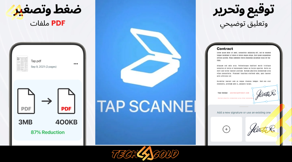 يعد TapScanner  أقوى وأشهر التطبيقات لمسح الوثائق بجودة عالية وتحويلها إلى ملفات رقمية يمكن حفظها أو مشاركتها بسهولة، التطبيق متوفر لأجهزة الأندرويد والآيفون، يتيح للمستخدمين القيام بمسح ضوئي Scan لأي مستند أو ورقة باستخدام كاميرا الهاتف، وتحويله إلى ملف PDF أو صورة عالية الدقة بضغطة واحدة فقط، يقوم بالتعرف على حواف الورقة، وتحسين الإضاءة،تطبيق تحويل الصور الى PDF وتصحيح الانحرافات للحصول على أفضل نتيجة ممكن ةحيث يمكنك اجراء عملية التحويل في ثواني، وعندما تنتهي عملية التحويل، يمكن اجراء أو تنفيذ بعض التعديلات على الملف حسب ما تريد.