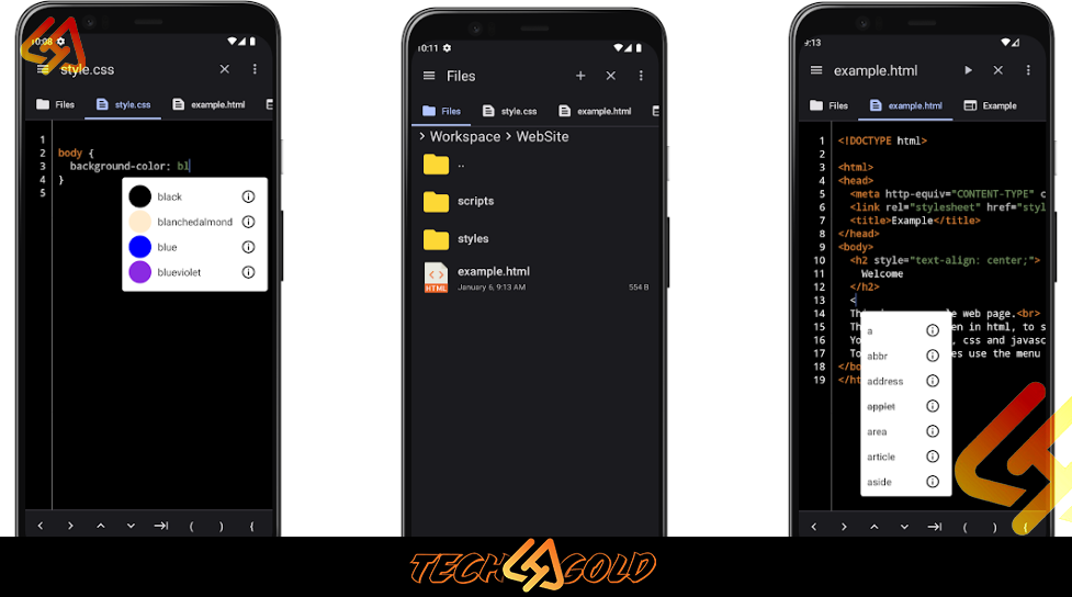 - يوفر بيئة تطوير IDE كاملة داخل الهاتف دون الحاجة لجهاز كمبيوتر.