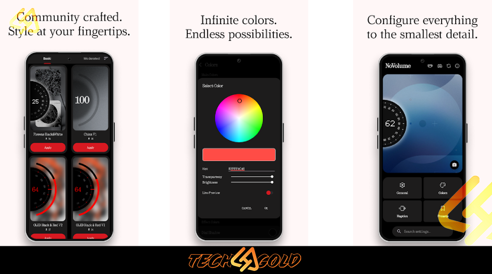 افضل التطبيقات لتغيير شكل مستوى صوت الهاتف،وهو تطبيق مجاني وبديهي لمحبي التخصيص، حيث أنه تطبيق لتخصيص شكل مستوى صوت الهاتف، يمكنك من خلالة أن تطور طريقة التحكم في الصوت على جوالك، يقدم التطبيق شريط صوت مميز بالاضافة الي اهتزازات مستوحاة من Nothing OS، فضلا عن هذا، فان الاهتزازات التى يقدمها تطبيق NoVolume ممتعه ومميزة ولن تجدها في اى تطبيق آخر في هذة الفئة من التطبيقات، كما انك عند استخدام التطبيق سيصعب عليك الرجوع الي الوضع التقليدي، والأجمل أن التطبيق يقدم الكثير من الخصائص على رأسها، امكانية استثناء تطبيقات بعينها، كما يمكنك استخدام خاصية تعديل سرعة التحكم باللمس حسب ما تريد، اذ تستطيع أن تقوم بالانتقال من 0 إلى 100 بحركة فقط، بالاضافة الي ذلك، تستطيع أن تقوم بتغيير مكان شريط التحكم في مستوى الصوت وحجمة، احد نقاط قوة التطبيق، هو أنه يتيح لك خاصية لتعديل حجم الأرقام وسمك الخط، كما يمكن إضافة تأثيرات الظل والشفافية، ومن رأيي أن التطبيق من أفضل وأجمل تطبيقات تغيير شكل مستوى صوت الهاتف.